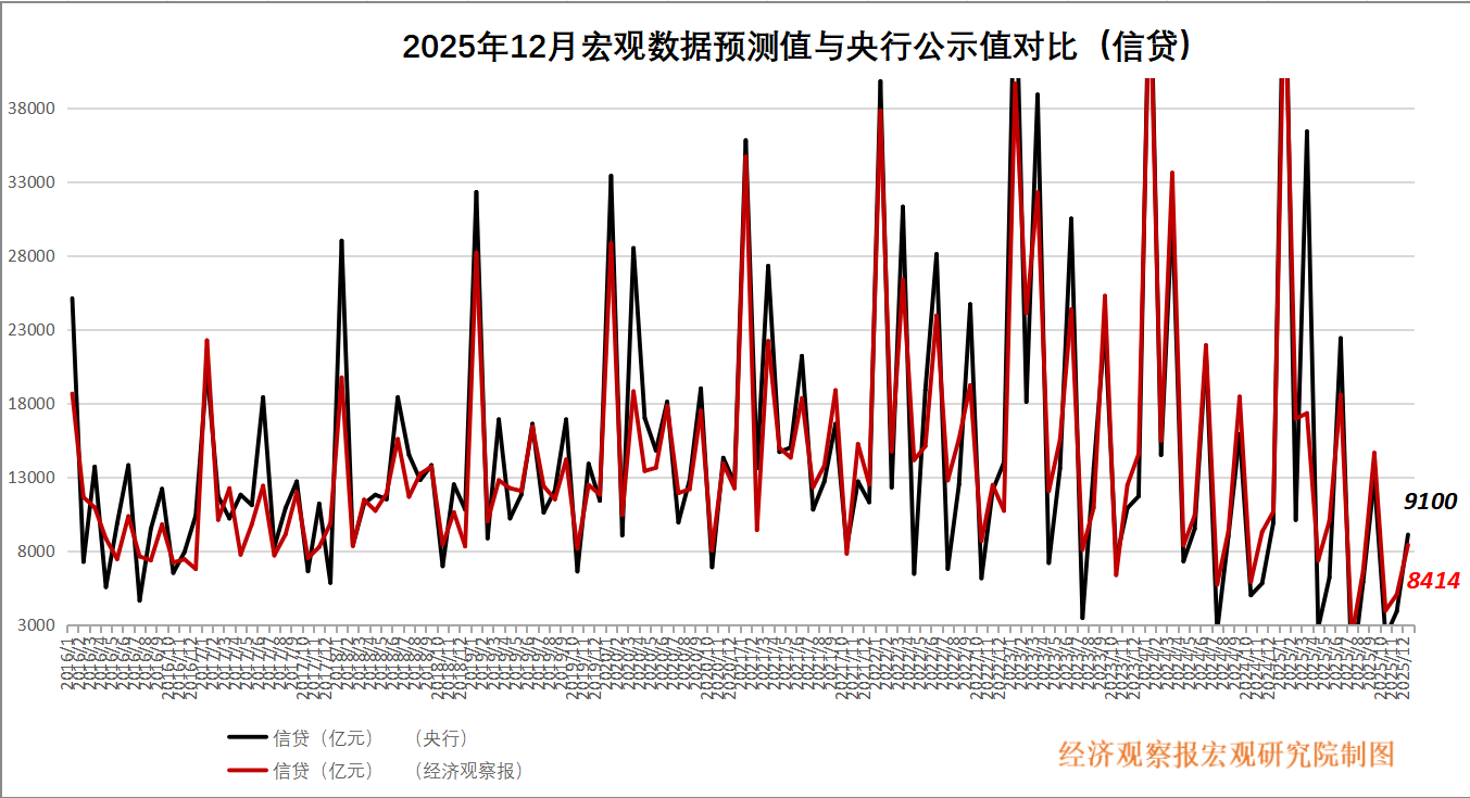 新增信贷公布值(同比):9100亿元