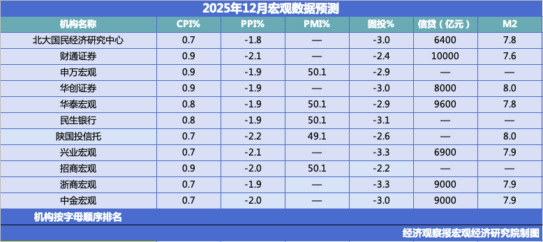 由《经济不雅察报》发起的“经济不雅察报月度不雅察”,每月发布一次。本次共有11家机构参与月度宏不雅数据展望。